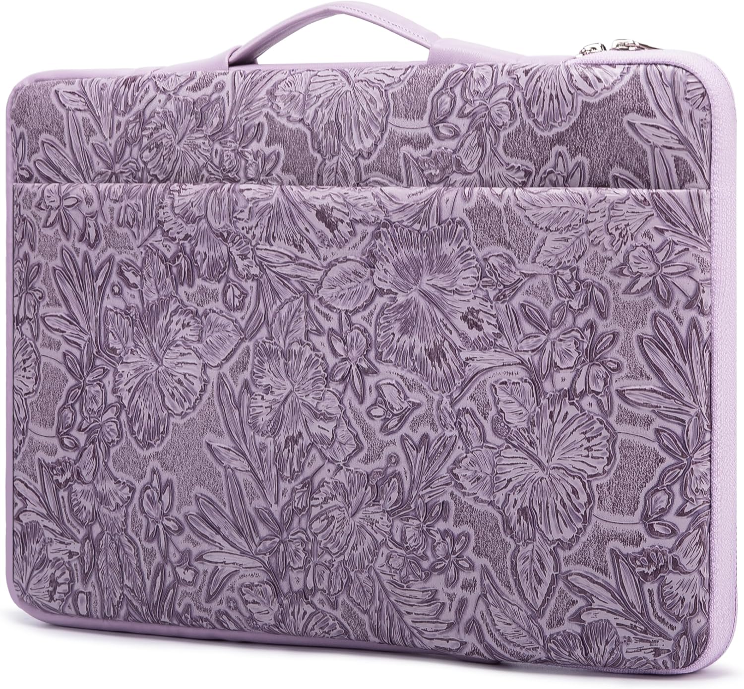The Kinmac 360° Heavy Duty Protective Laptop Sleeve combines style and security in one stunning package. Crafted from premium PU leather with an intricate embossed floral pattern, this sleeve transforms your everyday tech accessory into a statement piece. The detailed botanical design features hibiscus, plumeria, and tropical leaves that create a sophisticated, nature-inspired aesthetic in warm brown tones. Built for serious protection, this sleeve offers 360-degree coverage to shield your laptop from bumps, scratches, and daily wear. The heavy-duty construction ensures your device stays safe during commutes, travel, or storage. The convenient top handle makes carrying effortless, while the secure zipper closure keeps everything protected inside. Whether you're heading to the office, a coffee shop, or across the country, this laptop sleeve delivers both functionality and elegance. The embossed pattern adds texture and visual interest without compromising the sleek profile, making it perfect for professionals who appreciate distinctive design details.