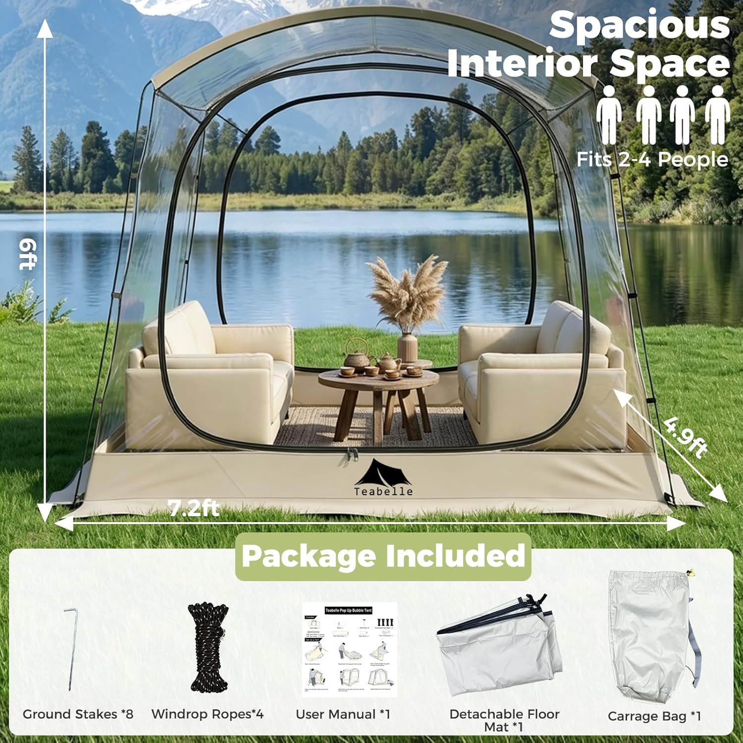 Teabelle Pop-Up Bubble Tent, 1-4 Person Transparent Outdoor Shelter with 540°View